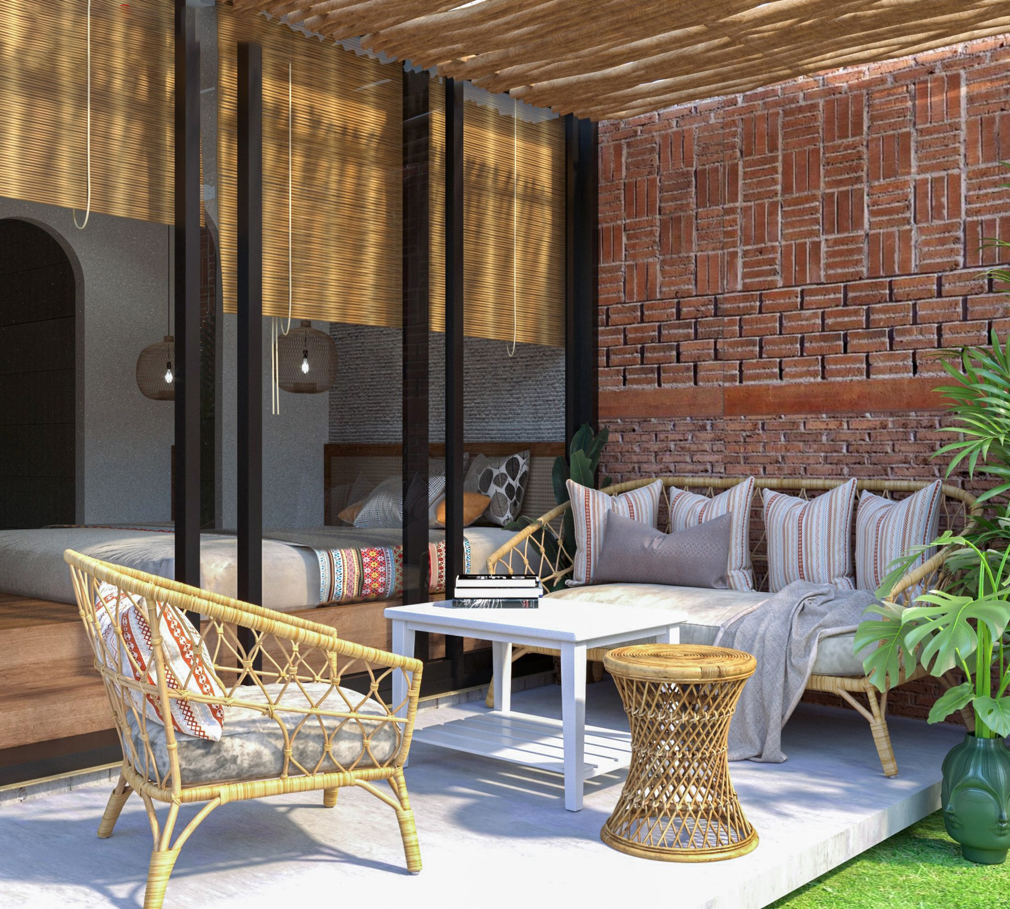 Kết nối trực tiếp với các không gian mở này là các không gian sống ngoài trời. Không gian ngoài trời đã được chứng minh là một yếu tố quan trọng làm tăng giá trị một ngôi nhà, là một tính năng ngày càng phổ biến trong thiết kế nhà mới do thiết kế không gian mở đang ngày càng được ưa chuộng hơn. Những lựa chọn phổ biến cho không gian sống ngoài trời được ưa chuộng có thể kể đến như tiếp khách, ăn, uống ngoài trời, bếp ngoài trời,... với những bộ bàn ghế sử dụng được ngoài trời hay những tiểu cảnh đầy màu sắc.